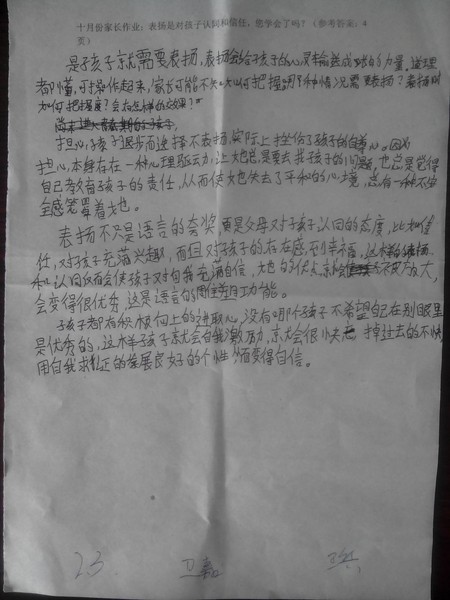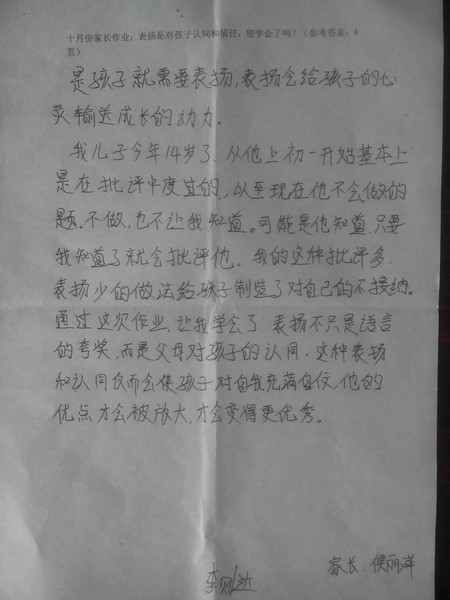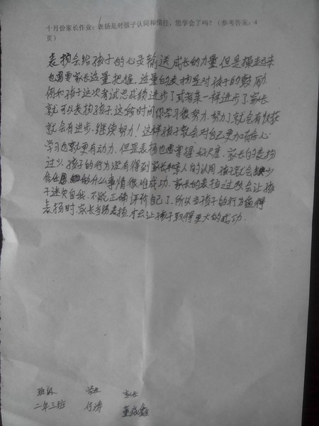 嘉荫二中二年三10月优秀家长作业