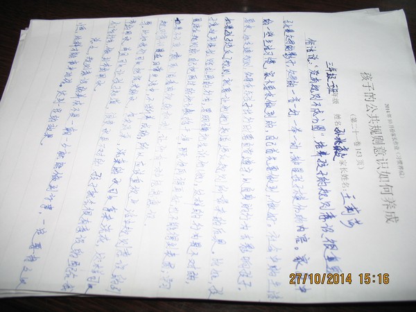 三年级10月份优秀家长作业
