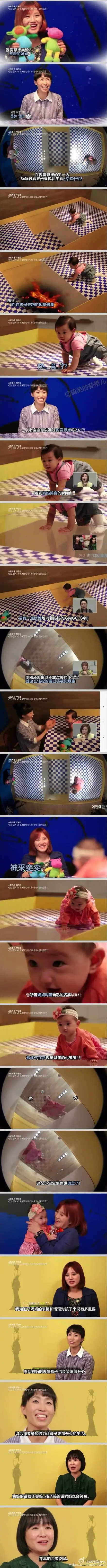 韩国某电视节目设计了一个环节,在一个具有视觉悬崖环境中,让孩子和妈妈处在视觉悬崖的两边,看看孩子究竟是否在妈妈没有表情和有笑容的情况下,可以战胜心中的恐惧,成功通过视觉悬崖。