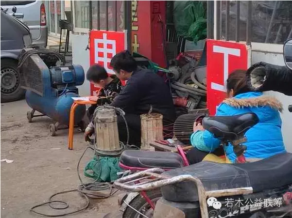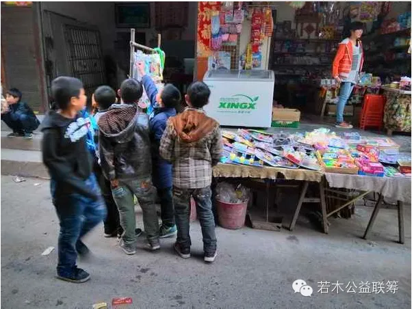北京的某个城边村,父母在自家店门口一边工作、一边陪着孩子写作业