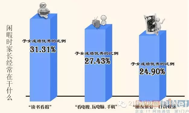 调查数据显示,闲暇时父母经常读书看报的家庭子女成绩优秀的比例更高;