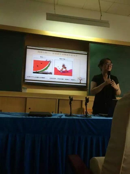 在绘本展推广好了以后,我们邀请到一位我们身边的亲子陪伴阅读非常优秀的妈妈杜丽华老师,来和我们一起分享亲子阅读的那些收获和技巧。应该说我本人就是亲子阅读的收益者,当我开始和孩子坚持亲子阅读以后,收获了很多的快乐和惊喜。杜老师在分享的时候说道,坚持的理由是首先应该让绘本滋养我们的心灵。其实我们能够坚持做亲子阅读的话,做大的动力就是让自己先爱上绘本。我就是一个爱上绘本的妈妈。孩子当然也爱上了。