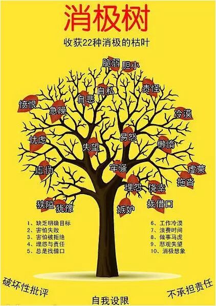 最后附上积极树和消极树,如果你现在结的积极树上的果更多,那我希望你永远硕果累累,如果你现在消极树上的果更多,我希望你慢慢来,并努力结出积极树上的果子,最后也硕果累累,不用着急,你可以花十年甚至更长时间来改变,只要你意识到你需要改变,并为自己的每次改变感到高兴!