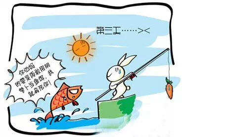 第一天,小白兔去钓鱼,一无所获。第二天,它又去钓鱼,还是如此。第三天它刚到,一条大鱼从河里跳出来,大叫:你要是再敢用胡萝卜当鱼饵,我就扁死你。