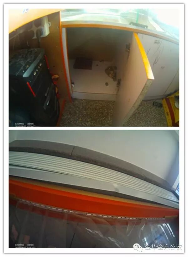 上方为王先生店内被盗图,下方为舒女士卷闸门被撬图