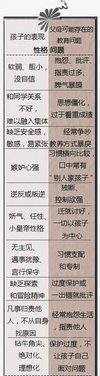 看看小编今天给您准备的孩子问题背后的家庭教育问题对照表,找到问题的根源,给孩子创造一个更好的原生家庭吧!