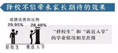 家长择校是为了让孩子享有更优秀的教育资源,提高孩子的学业水平。调查数据却表明,“择校生”和“就近入学”的学业情况相差甚微,成绩优秀的比例分别是29.95%和28.48%,在良好、中等和较差等其他学业水平中,二者的数据也较为接近。