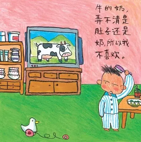 其实,像《我为什么讨厌吃奶》这样的绘本,我觉得,大人还是要用“无邪”的眼光来看待。我们常说孩子天真无邪,在年幼的孩子那里,的确体现出这一特点,没有大人关于性方面的观念——大人觉得这些绘本“尺度大”,那是他们不洁的观念包括性意识在起作用。小孩子不会这样,他们是对成人身体的好奇和观察。