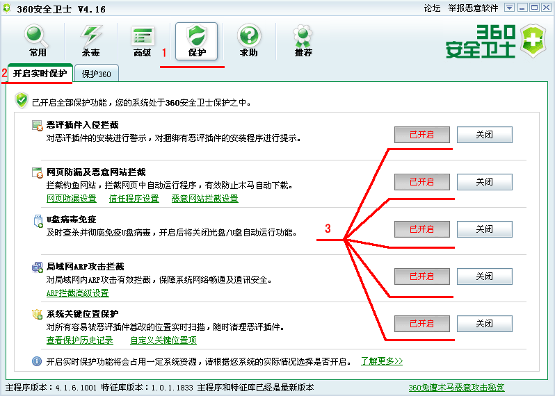 360安全卫士系列_开启实时保护