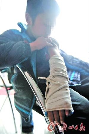 小伟左手还包着厚厚的石膏,他已有20多天没上学了。记者何波 摄
