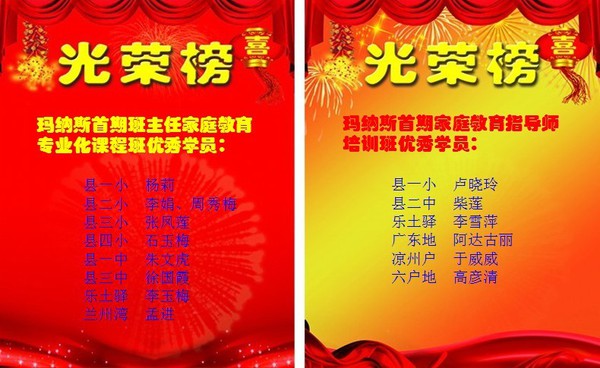 一分耕耘,一分收获,事实证明:通过这一年的学习,大部分老师意识到了家校结合的重大意义,他们认真学习专业课程,积极参与呱呱课堂视频交流,踊跃参加呱呱练兵活动,按时完成理论考核、个案以及说课(论文)。在实际工作中学以致用,成立家庭教育指导委员会,召开变革家长会,每月下发家庭教育指导菜单,组织家长学习《不输在家庭教育上》等活动。有的老师把自己学习家庭教育的心得体会、实践经验等发到了博客上,跟大家一起分享。 综合这些表现,在学习结业之际,中华家庭教育研究院与玛纳斯县教育和科学技术局共同评选出优秀学员,特此公告,以资鼓励。